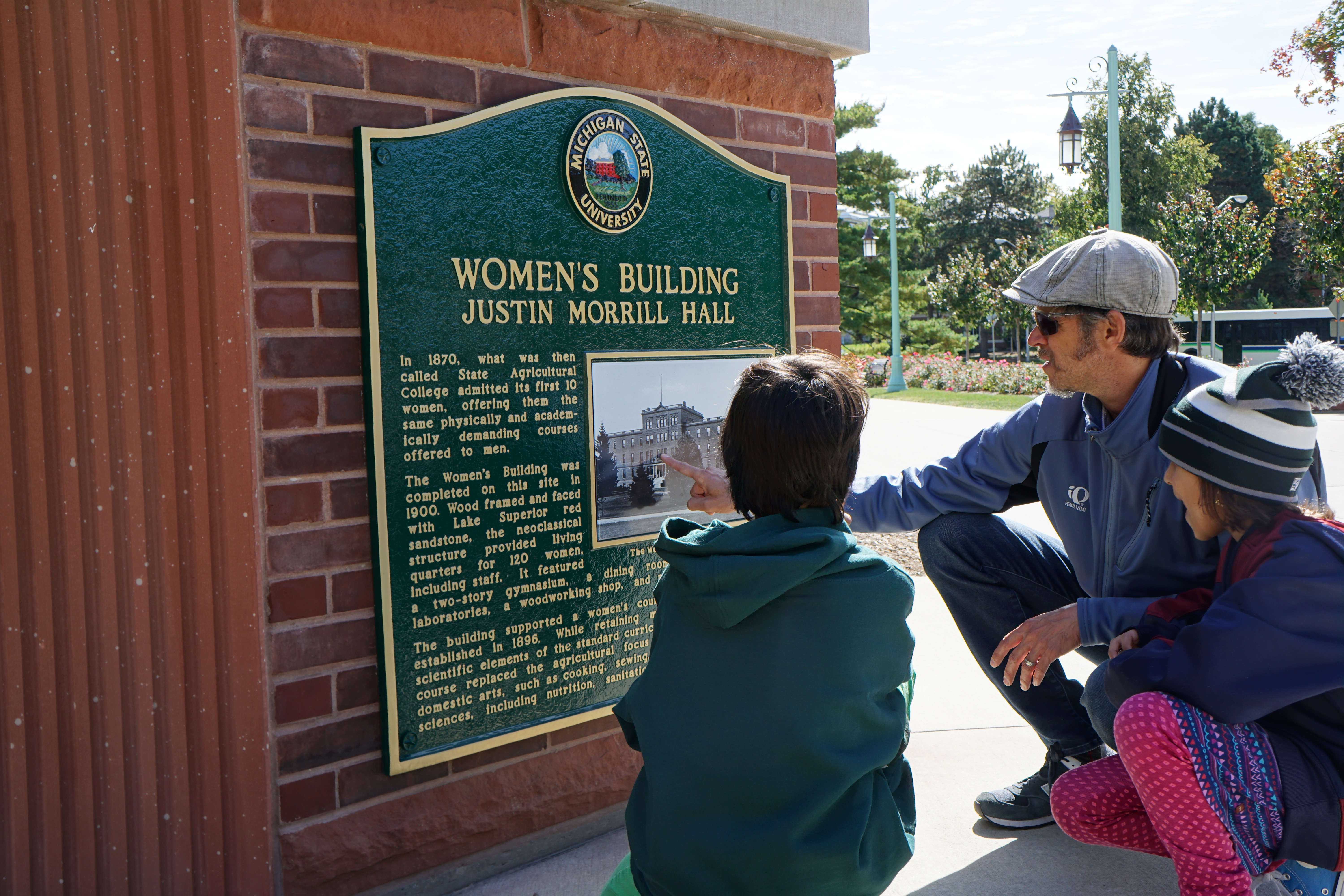 A few weekends ago the family went back to MSU for the Alumni Weekend. We’d been talking about a trip back for quite some time. Eric has stronger ties to MSU and East Lansing than I do-he got his PhD there and came back to teach there as well. Given this, he was more involved with the undergraduate campus and life than I was. The medical school campus was just off the main undergrad campus and we rarely had cause to go to the main campus. There were plenty of tailgates and games attended by my med school classmates, but somehow I never went to a single one. And while I love my medical school and classmates, I harbor no love for Michigan and the snow and cold. Nevertheless, it is where we met and Eric has managed to make the kids into diehard Spartans fans so off we went!