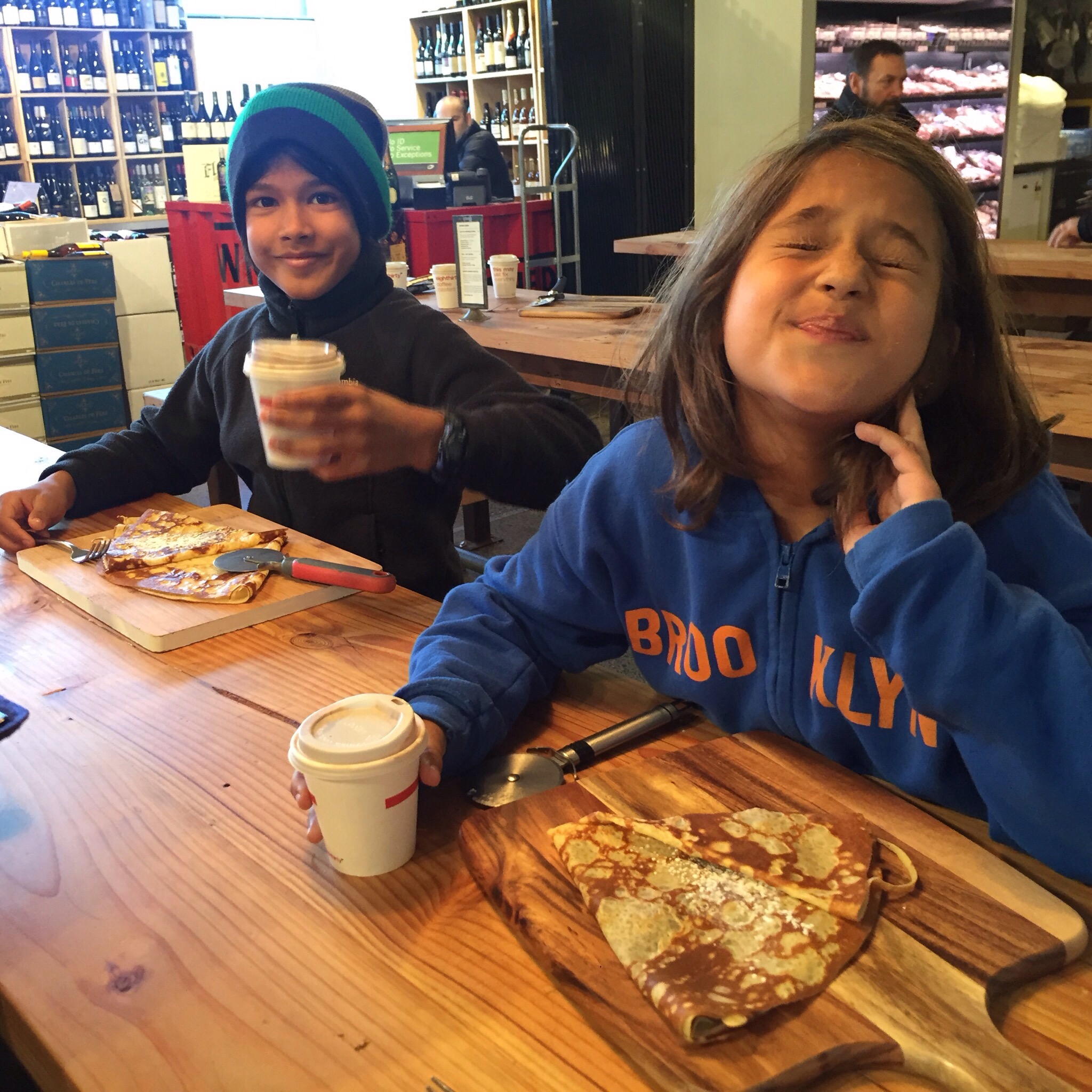 The girl insisted on crepes for breakfast, and now that we had a car we found a creperie and made our way there. I’ll do a separate post at some point on how much I love the Internet for travel and how different these trips are with it. The creperie was situated in a little modern farmer’s market/food court (is that what you call them?) where not only did we get a delicious crepe but then stocked up on bread and cheese for our lunch.