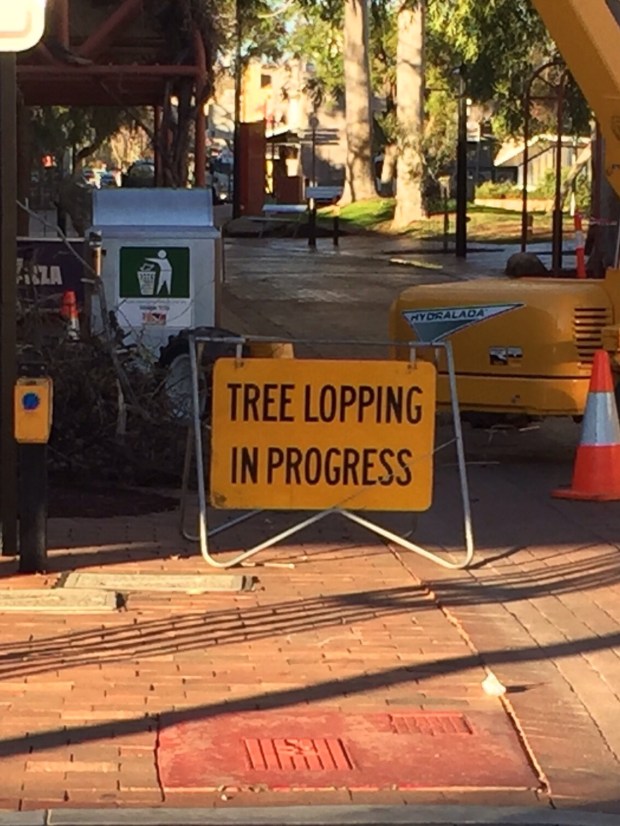 Doesn’t lopping just sound refined? Also, I think the crane and chainsaw would have been a giveaway even without the sign.