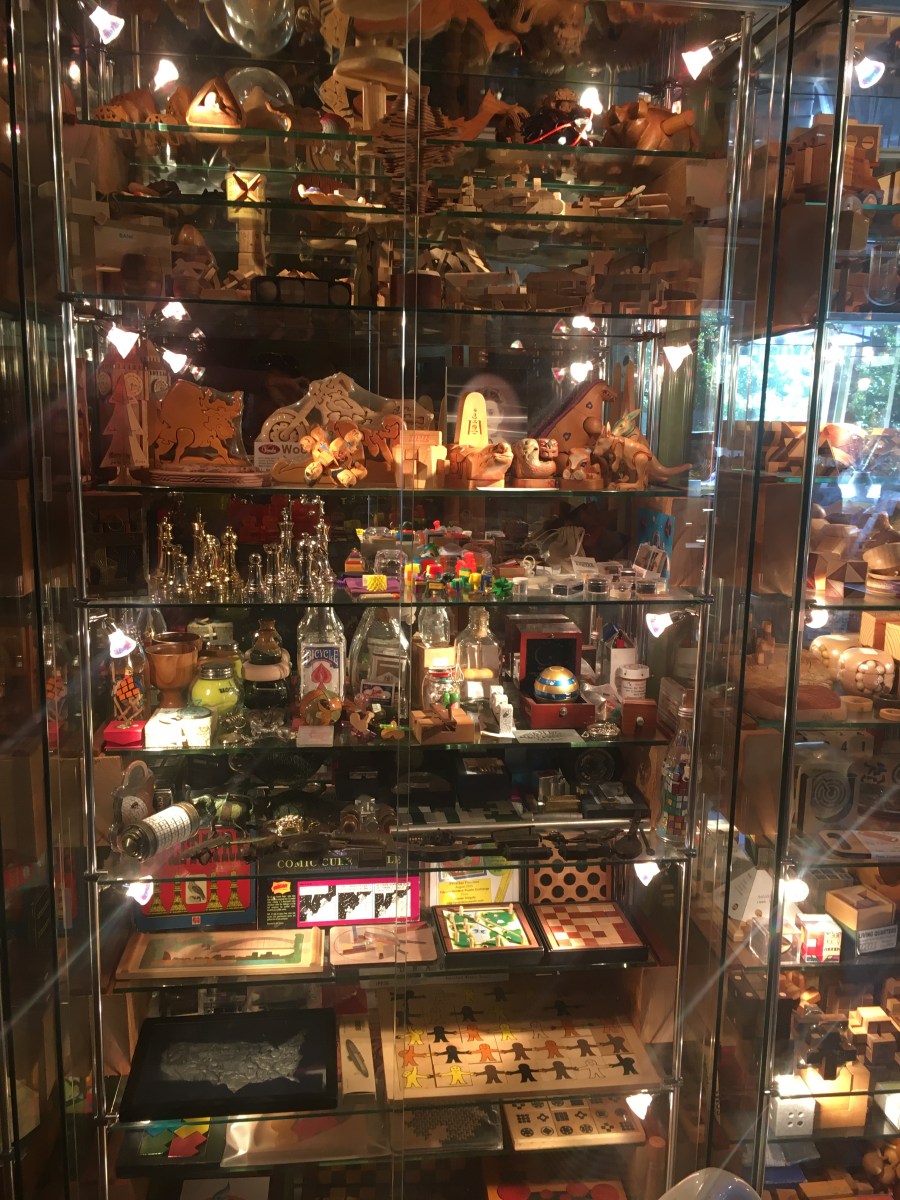 IMG_4941 Previous Next Published December 13, 2017 at 3024 × 4032 in In which we get to the tippy top, and head back again 80s friends -remember the Rubik’s rings? On the right, one of many puzzle display cases throughout the shop