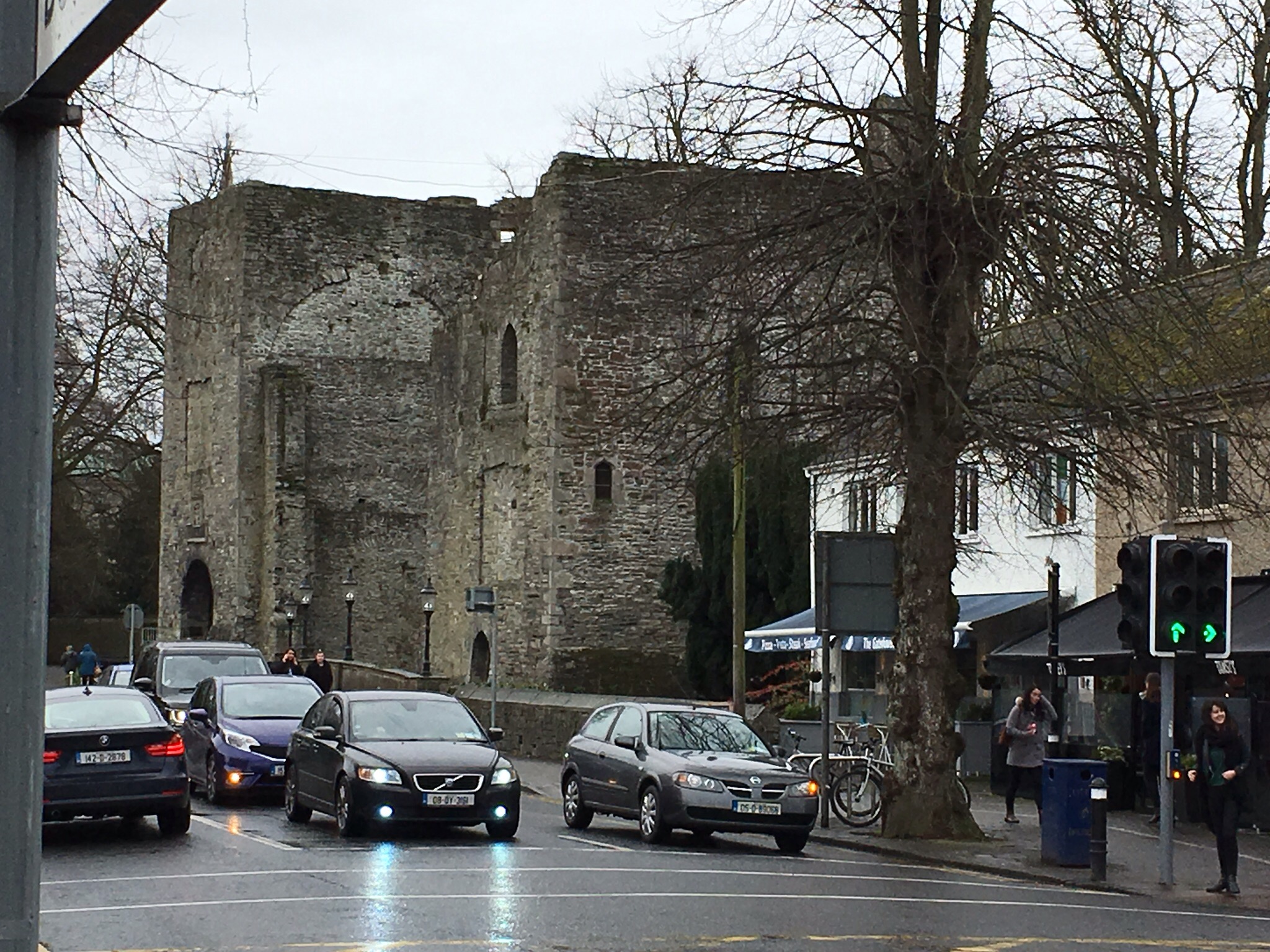 The main road in Maynooth is then capped by these structures, the ruined castle on one end and Carton house on the other. The castle is a tourist attraction, open in the spring, and Carton House is a hotel and golf course.