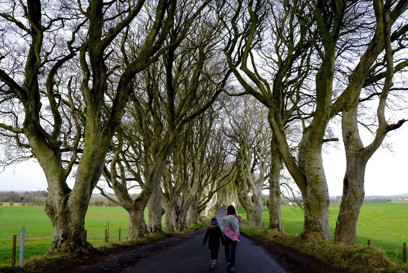First stop was the Dark Hedges. Beech trees twist and arc overhead to create two colonnades along a small patch of road, an arboreal tunnel to welcome you to the Stuart estate. Charles Stuart first planted the trees in the 18th century for this reason, simply to impress visitors to his manse. It’s better known now as the escape route Arya Stark takes from King’s Landing on Game of Thrones. When backlit, the trees form an ethereal walkway, and I half expected to see fairies meandering past.