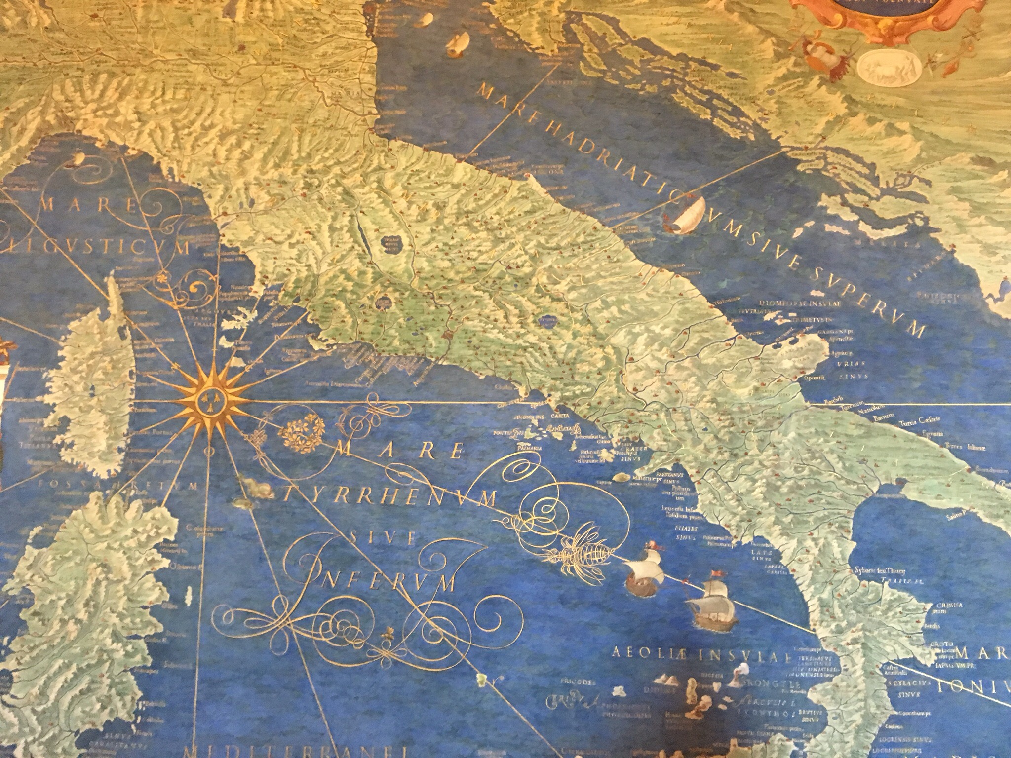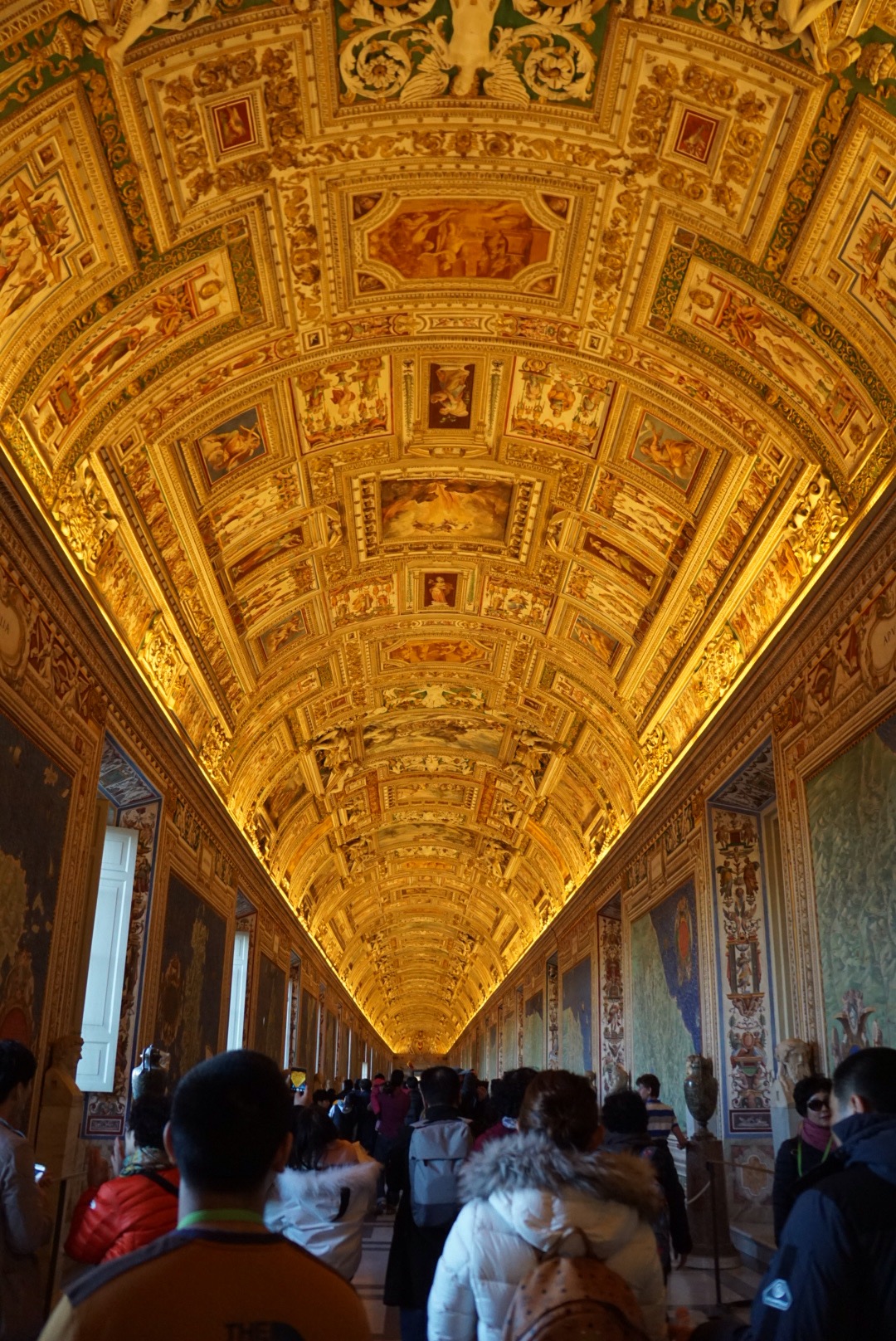 The museums of the Vatican are massive, and contain room upon room of antiquities Greek and Roman. Every room is decorated with opulent gilding on the doors, the ceilings with elaborate paintings, and the overall effect is rather overwhelming. I think I’m supposed to be awed, but mostly it makes me think of the extravagance and wealth of the Catholic church, and how it seems hypocritical given that there’s something about rich men and camels and needles in the Bible, but what do I know. By far our favorite was “The map room,” a long hall with frescoed maps on either side.