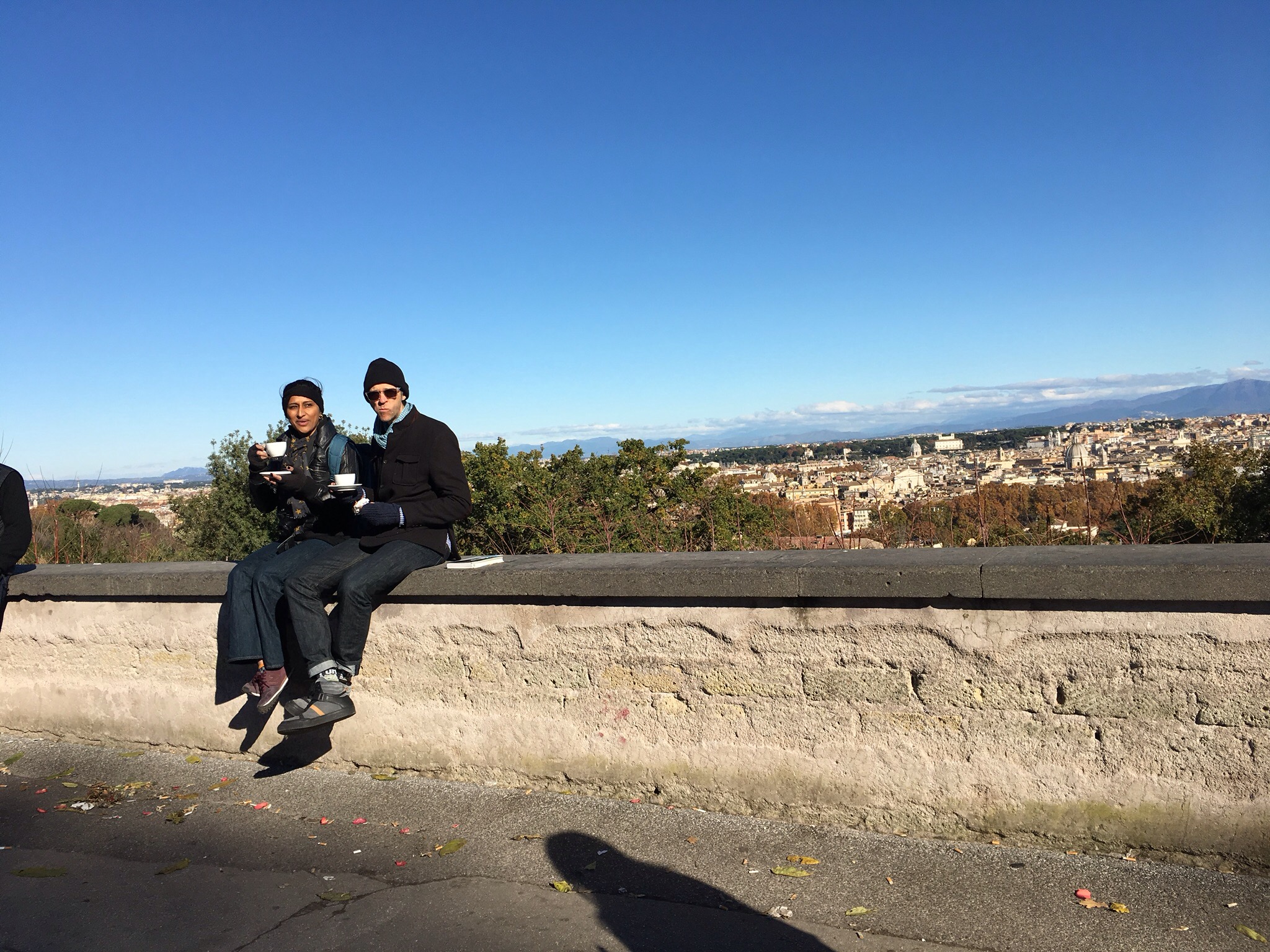 Onwards south we went, through narrow winding lanes that climbed upwards. Worried we were getting lost and the path to the Vatican the boy had planned was unreasonably long, we stopped at a corner to catch our breath and consult the map. We had just decided to descend when two friendly walkers came upon us and asked if we needed help. They told us that our initial plan was actually a lovely walk, and if we made it up to the top we could see the firing of the noon cannon. So we continued on, Eric yelling at the girl periodically to stay out of the way of oncoming traffic, and found ourselves at the plaza Garibaldi overlooking all of Rome. Eric and I had a cappuccino whille awaiting the cannon fire. Once my eardrums stopped echoing after the blast, we went down the other side of the hill, found a simple lunch place and then headed to the Vatican.