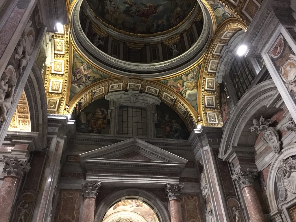 Our feet were quite tired by the end of this, and my phone pedometer told me we’d walked eight miles already. One last stop at St. Peter’s Cathedral, the largest church in the world. It was time for vespers and the choral singing lent a hallowed air to the cathedral, though again, it’s hard for me not to feel a sense of overdoneness with all of the grand churches. The reverent purpose of the church is also lost on the girl, who exited Vatican city and came up with this sacrilegious joke: “What’s Jesus’ least favorite letter? A T!” We shushed her and told her not to say it too loudly, at least until we were out of hearing range of the Pope.