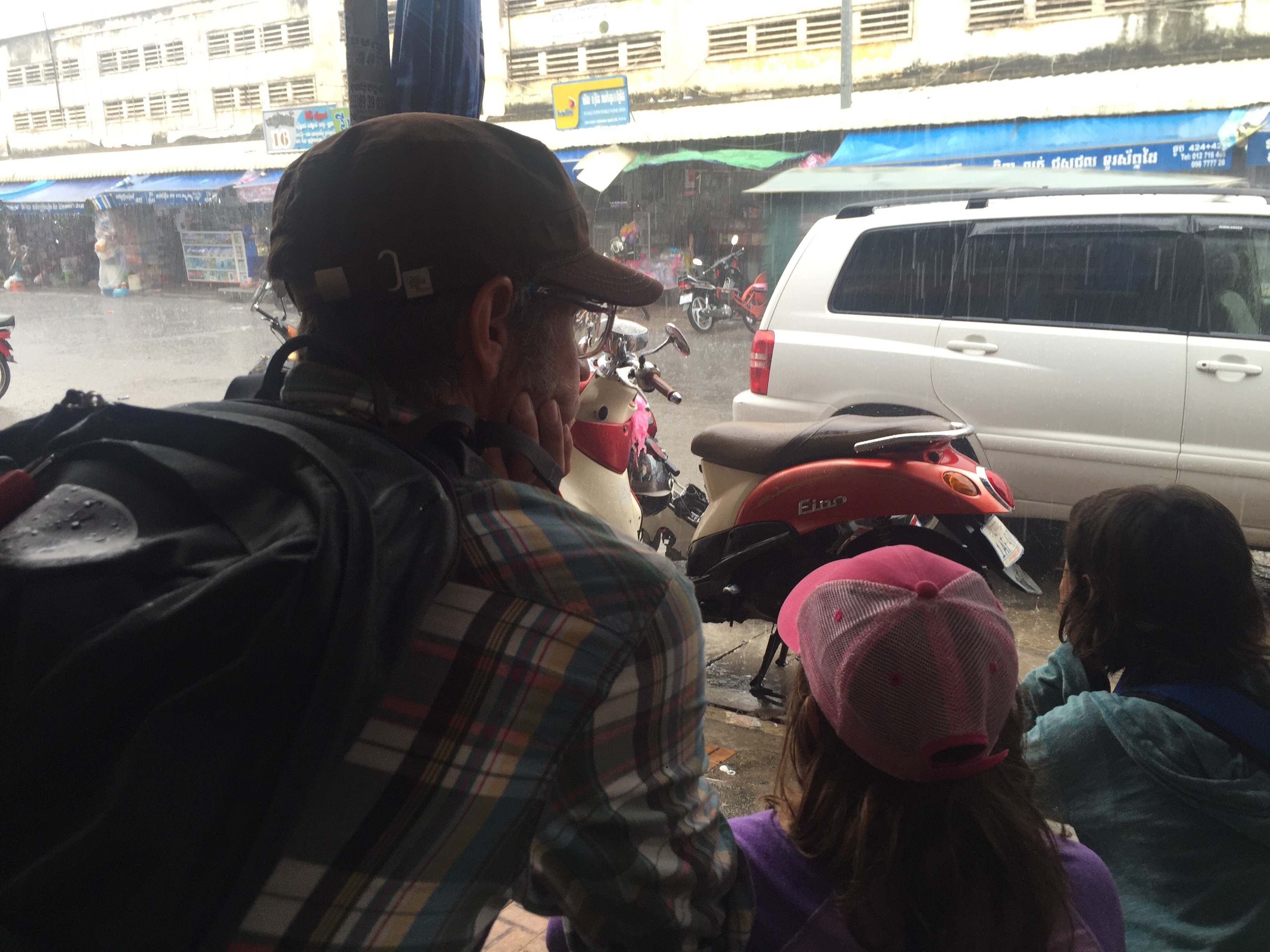 The rain showed no sign of letting up, and since we’d planned a trip to the Genocide Museum and the Killing Fields the next day, we wanted to get some books about Cambodian history and culture for the kids. We hopped a Tuk-Tuk again and went to the excellent Monument bookstore, where a very nice employee gave us great suggestions for books for ourselves and the kids. After this, we were hot, wet, and tired, and realized that a Palace tour just wasn’t going to happen. Back home we went, to relax and enjoy another night of takeout, but not before a slightly stressful tuk tuk ride.​
