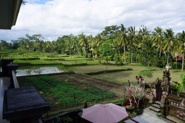 I booked a place a little ways out of city center in the village of Tengalagang, and we were all delighted. Inang Villa, where we stayed, was a tropical oasis nestled among rice paddies and was a fantastic place to retire to after hot sweaty days of walking. Given that its surrounded by farms there is the constant daytime music of roosters crowing, ducks quacking, and the loud hum of the cicadas. At night you hear the croaking of frogs and the gentle crickets. Add to this the sound of flowing water from the stone fountains which empty into the pool, and you feel like you’re in another world here.