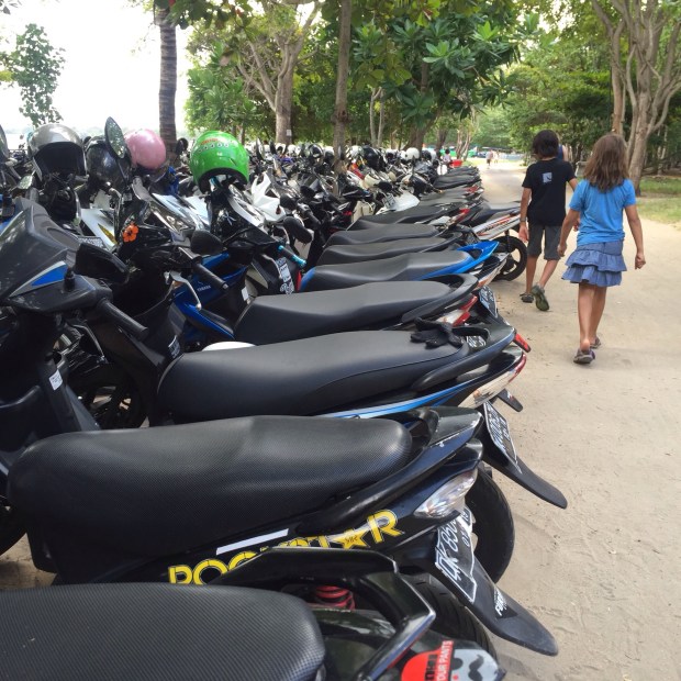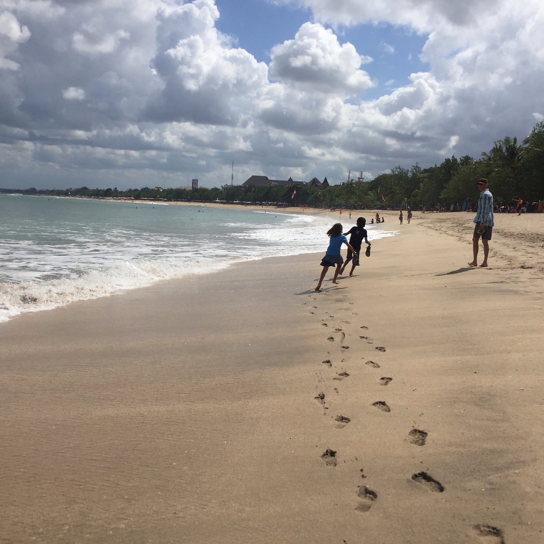 Bali is a popular tourist destination for much of Europe, Japan and Australia. Our first night we stayed in Kuta, conveniently near the airport, but is an area which is overrun with partying Australians. It’s crowded and assaulting – every two minutes someone is asking you if you want your hair braided, or to come in their shop, or to take a taxi, or something else. The boy found this to be very sad – he perceives it as people having to beg for their livelihood, which isn’t entirely inaccurate, and he found that degree of inequality unjust. We liked walking along the beach and the kids played and jumped in the unpredictable surf, sometimes getting unexpectedly drenched and having a great time.